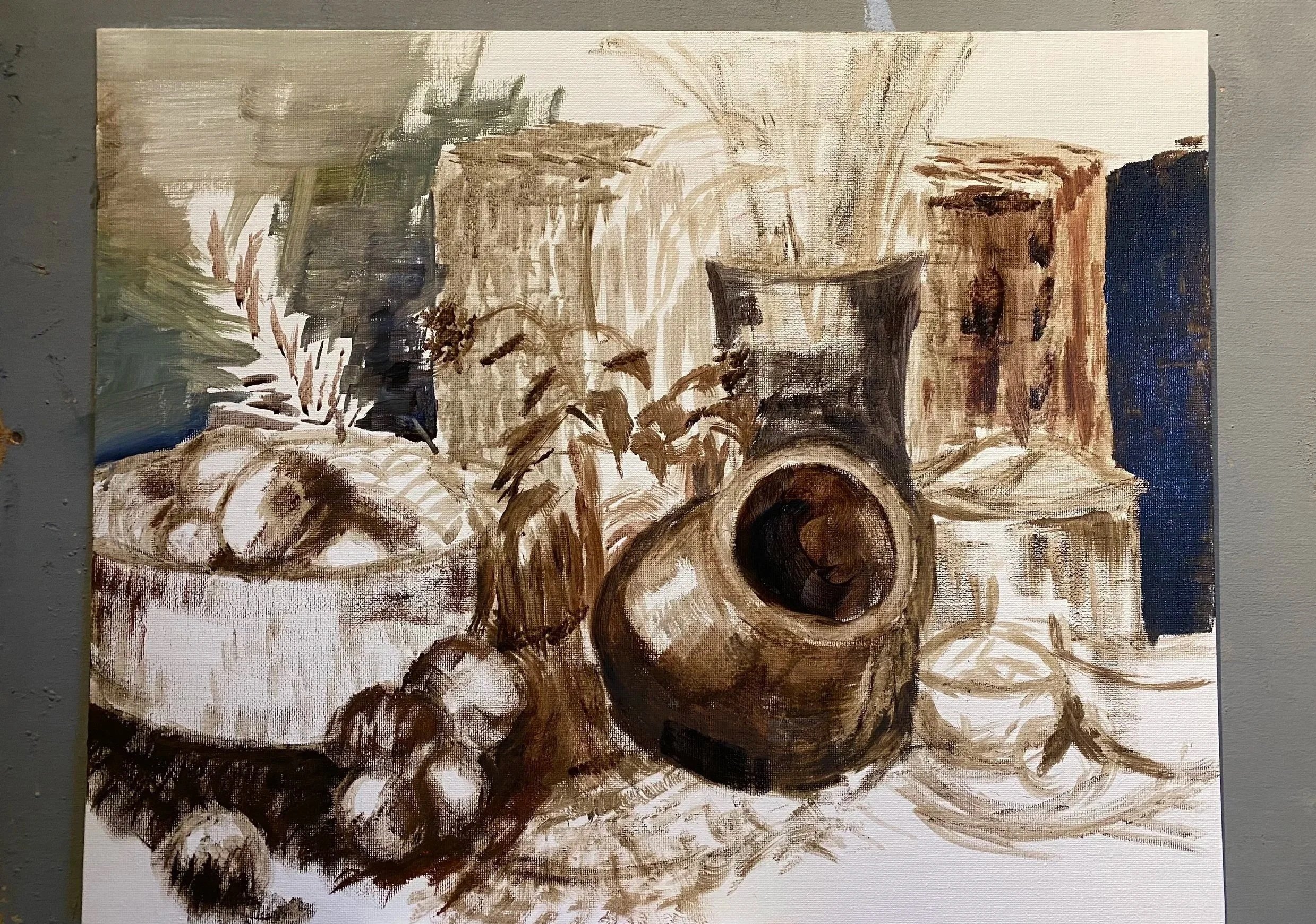 This session introduces oil paint while developing compositional understanding more deeply.